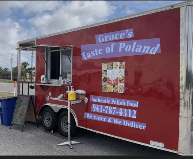 Starting their food truck journey in 2020, and known throughout the community of Port Charlotte, for their world famous pierogies, Grace’s Taste of Poland is ready to serve! Although pierogies are the dish they’re especially known for– Grace’s Taste of Poland also offers other authentic menu items such as their award-winning potato pancakes, their Hungarian goulash, or we recommend trying their fabulous Meatballs Ala, stuffed with cabbage and kielbasa. For a homemade taste of Poland, and traveling all over Florida, book Grace’s Taste of Poland for your next party or event!