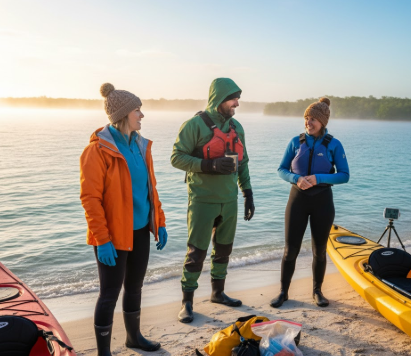 - Neoprene Accessories: Hands and feet lose heat quickly. Consider neoprene socks or booties (3mm is plenty) and lightweight paddling gloves to maintain circulation and dexterity.3