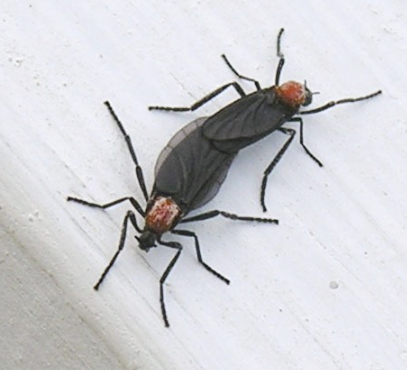 The lovebug (Plecia nearctica) is not actually a bug—it’s a species of march fly. They are small, black insects distinguished by a bright red or orange “cape” on their thorax (the section just behind the head).