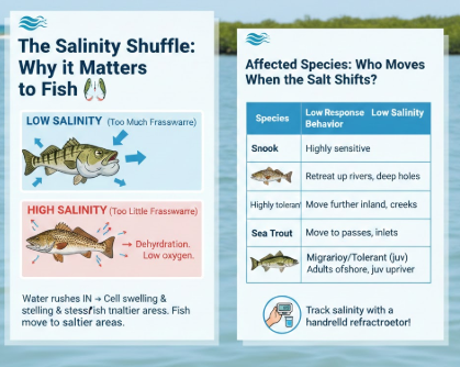 Salinity—the measure of salt concentration in the water—is one of the most critical factors influencing the behavior, health, and location of the region’s most prized game fish.