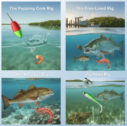 - Structure is Key: Fish congregate around structure (mangroves, oyster bars, docks, channels). Your rig should allow you to present your bait effectively in these areas without constantly snagging.